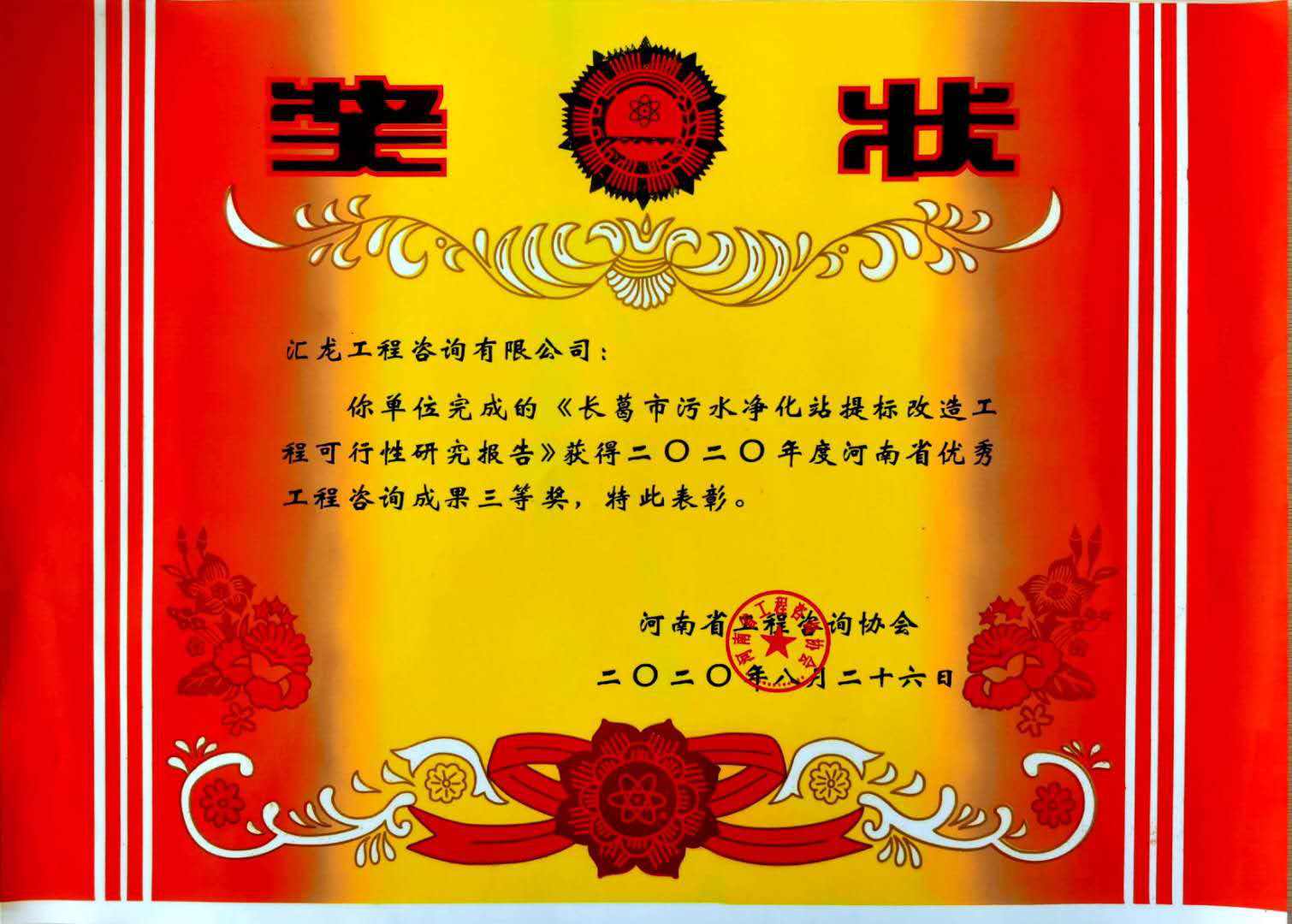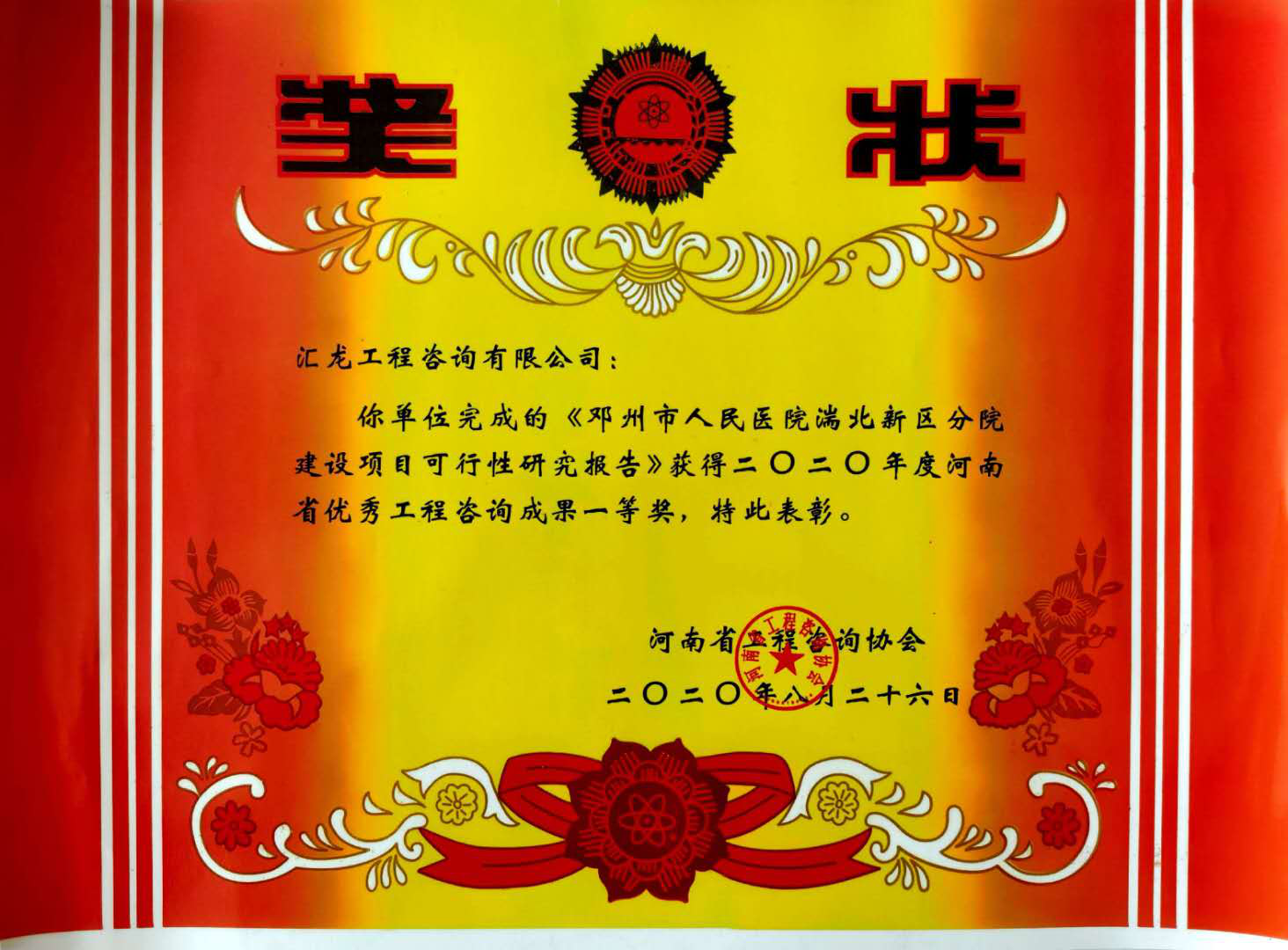 經(jīng)河南省工程咨詢協(xié)會評審,我公司四個項目獲得2020年度河南省優(yōu)秀工程咨詢成果獎。其中,“鄧州市人民醫(yī)院湍北新區(qū)分院建設項目可行性研究報告”獲得一等獎;“正陽縣技工學校整體遷建項目可行性研究報告”、“長葛市污水凈化站提標改造工程可行性研究報告”、“長葛市城南污水凈化有限公司提標改造工程可行性研究報告”獲得三等獎。